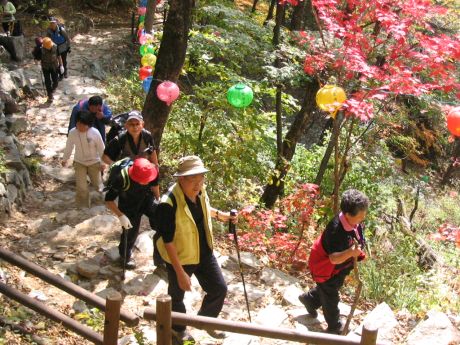 단풍은 산 밑에서만 아름답고 그 이상의 지대에서는 가뭄으로 인해 모두 말라져 있고 벌써 져들어 간다.