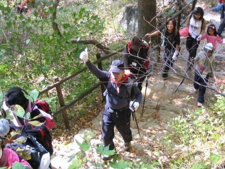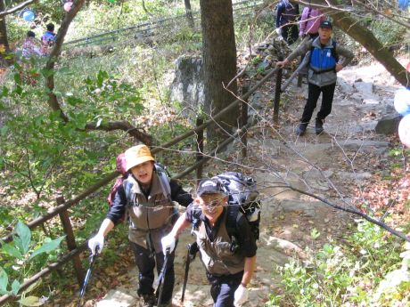 산을 많이 안 다닌 사람도 있어서 많이 걱정을 했는데 다행이 낙오자 없이 정상까지 가고 긴 코스인 북대쪽으로 하산 을 하였다.