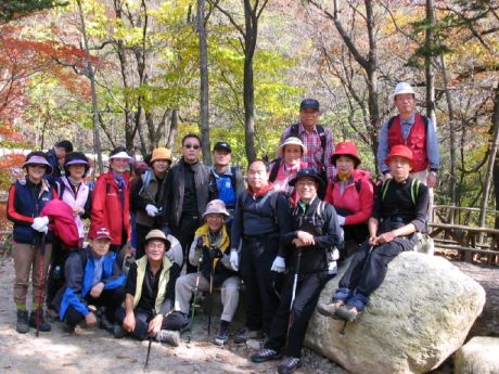 년간 계획에 의한 10월 오대산 등산을 한 날이다. 그래도 많이들 참석하고, 또 부부 동반한 사람들이 나를 포함하여 6명이나 됬다. 그간 같이들 다닌 사람들은 모두 반갑게들 인사하고 새롭게 온 사람들도 버스에서 인사 소개 하고 산행하면서 모두들 가까워 졋다. 남자들이야 모두들 현대전자 초창기 멤버들로서