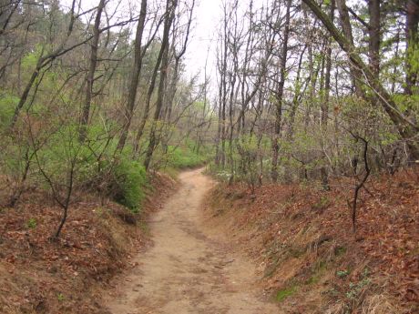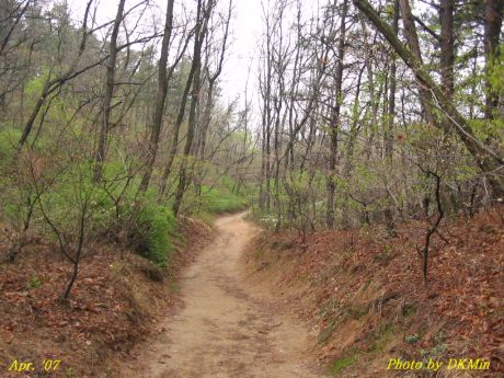 아침 5시반에 오늘도 광교산 헬기장까지 갓다 왔다. 돌아온 시간이 8시니 2시간 반 걸렸다. 좀 빨리 갔다 온 시간이다. 오늘은 날씨가 흐린 정도이다. 아침 일찍 비가 좀 내렸엇나 보다. 길이 축축하다. 사진을 몇장 찍어왔다.