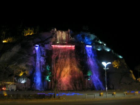 목포 시내를 지나가는데 큰 사거리에 인공폭포를 만들어 놓아 멋진 야경을 연출하고 잇다.