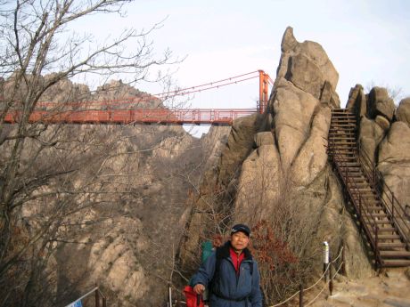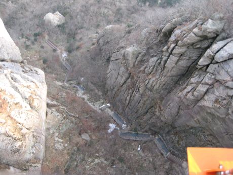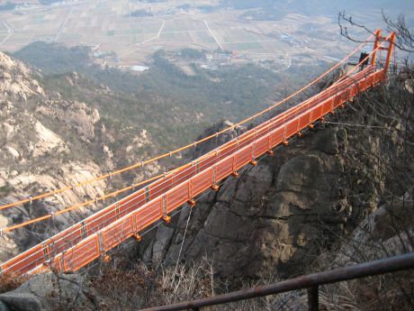 밑을 바라보니 까마득한 계곡이고 그곳에 계단으로 오르고 내려가는 길이 보인다. 발을 구르면 출렁인다.